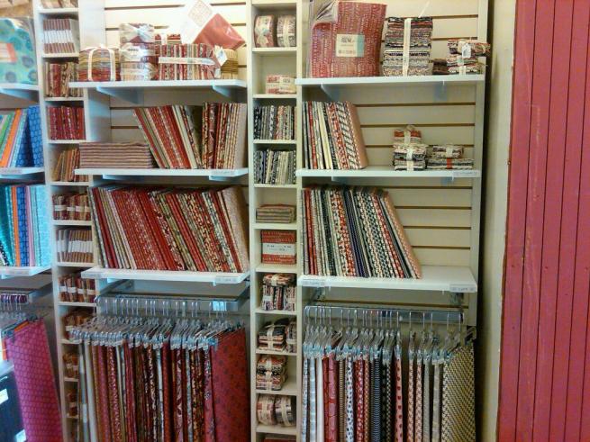 Well, about six months ago they decided to change their operations after 15-20 years in business.  They sold off all of their bolt fabric (and everything else for that matter) at fabulous sale prices (my stash doubled I think).  And then they had nothing but the sewing machines and some remaining notions/books.  So I had not gone back for many, many months.  They came out with this new approach to selling fabric again and was advertising through email and mail fliers.  Once I saw that they had a lot of my favorite designers back in stock, I made the trip again last Saturday.  They still do not have bolts, but have opted to sell everything in precut bundles.  All the manufactured pre-cuts and their own cut fat quarters, half yards, yards, and two-yard cuts.  Nothing bigger than that unless you pre-order the fabric before it arrives in the store and they will cut it in the back before doing the rest for the store shelves.  They have some selection of backing fabrics in 4/5? yard increments, but not a whole lot.