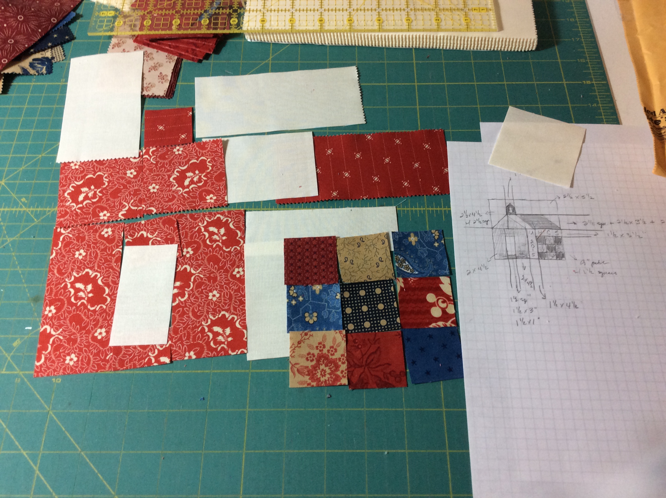 Moving right along here… I sat down this weekend and worked out my School House block for the gift quilt using some graph paper and traditional block designs.