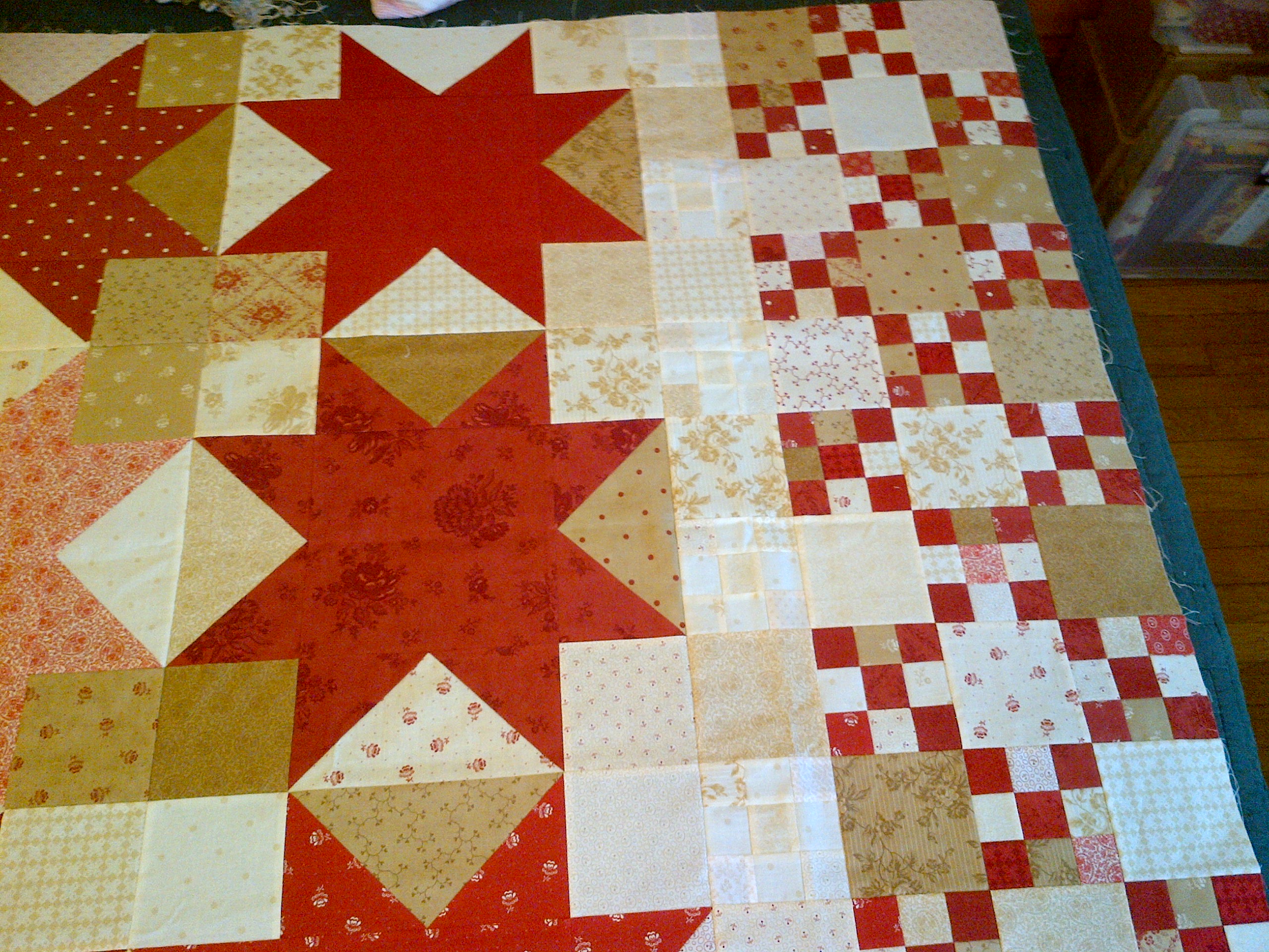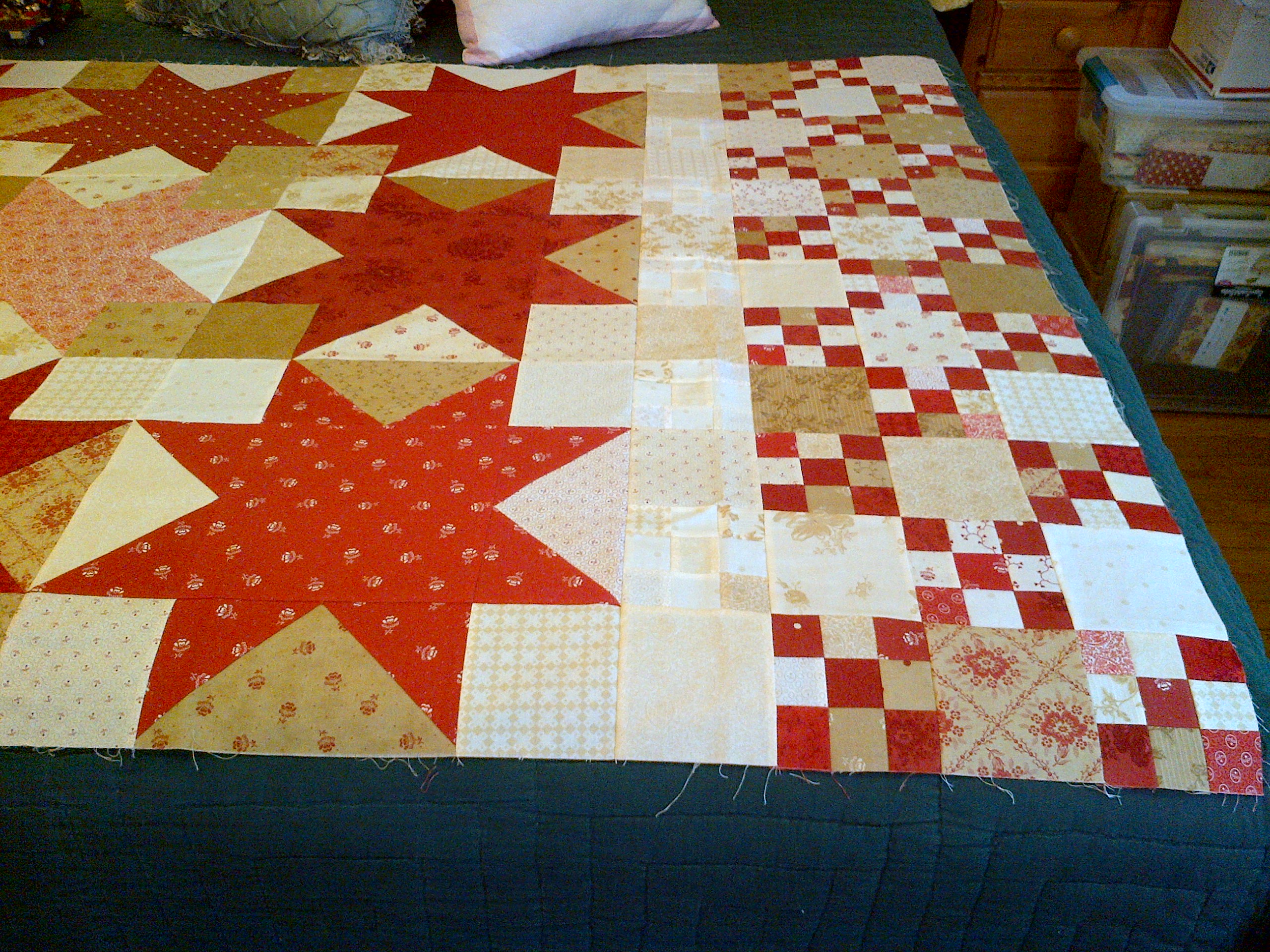 I pieced the back, but had to ‘make do’ with one small rectangle due to my shortage of that fabric. I should have used a primarily white alternate piece. I may replace it before I quilt it:
