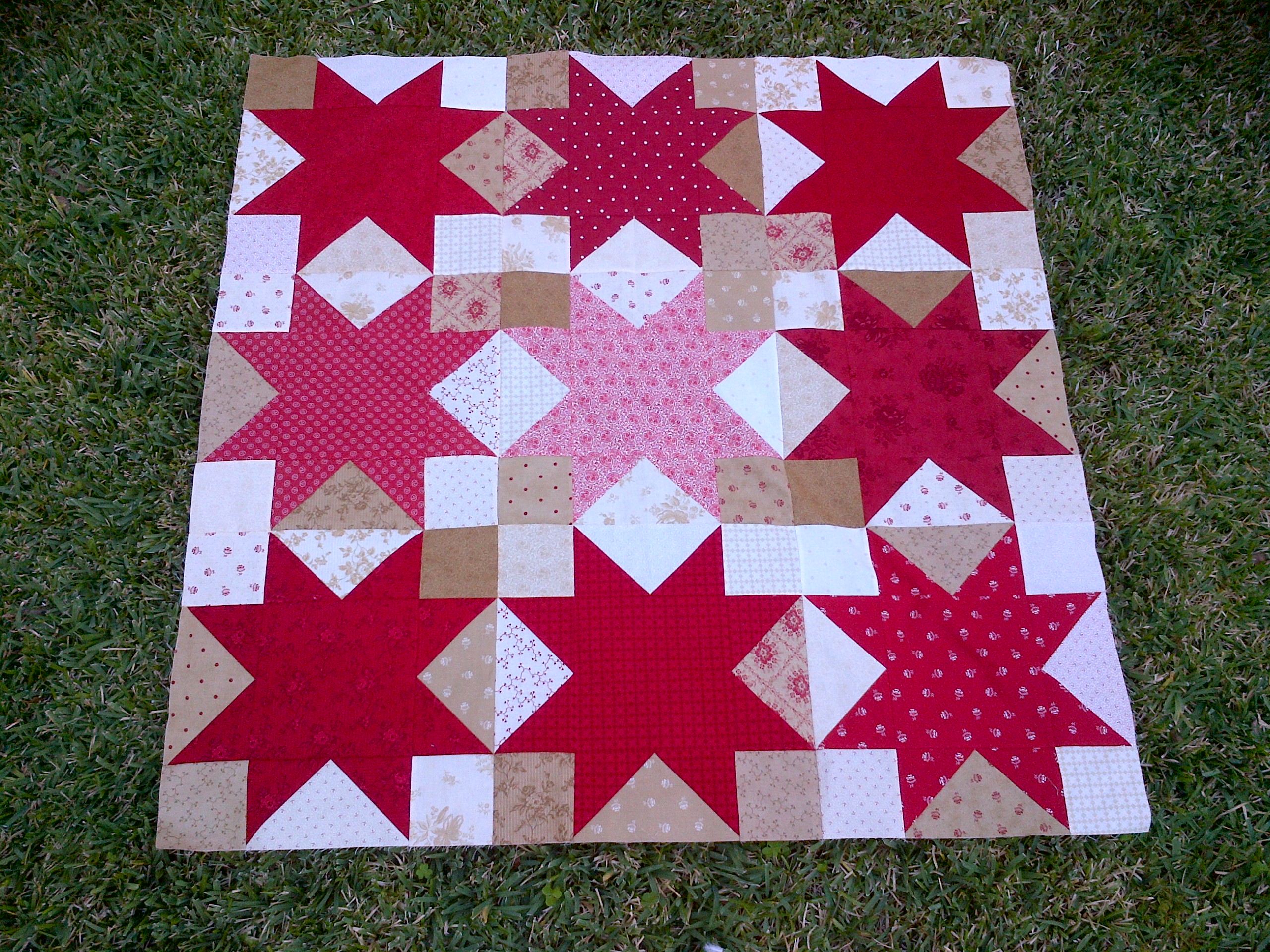 This morning I finished the center star portions with the surrounding strips. Next is the red/striped flying geese units. I want to get this block done tonight!
