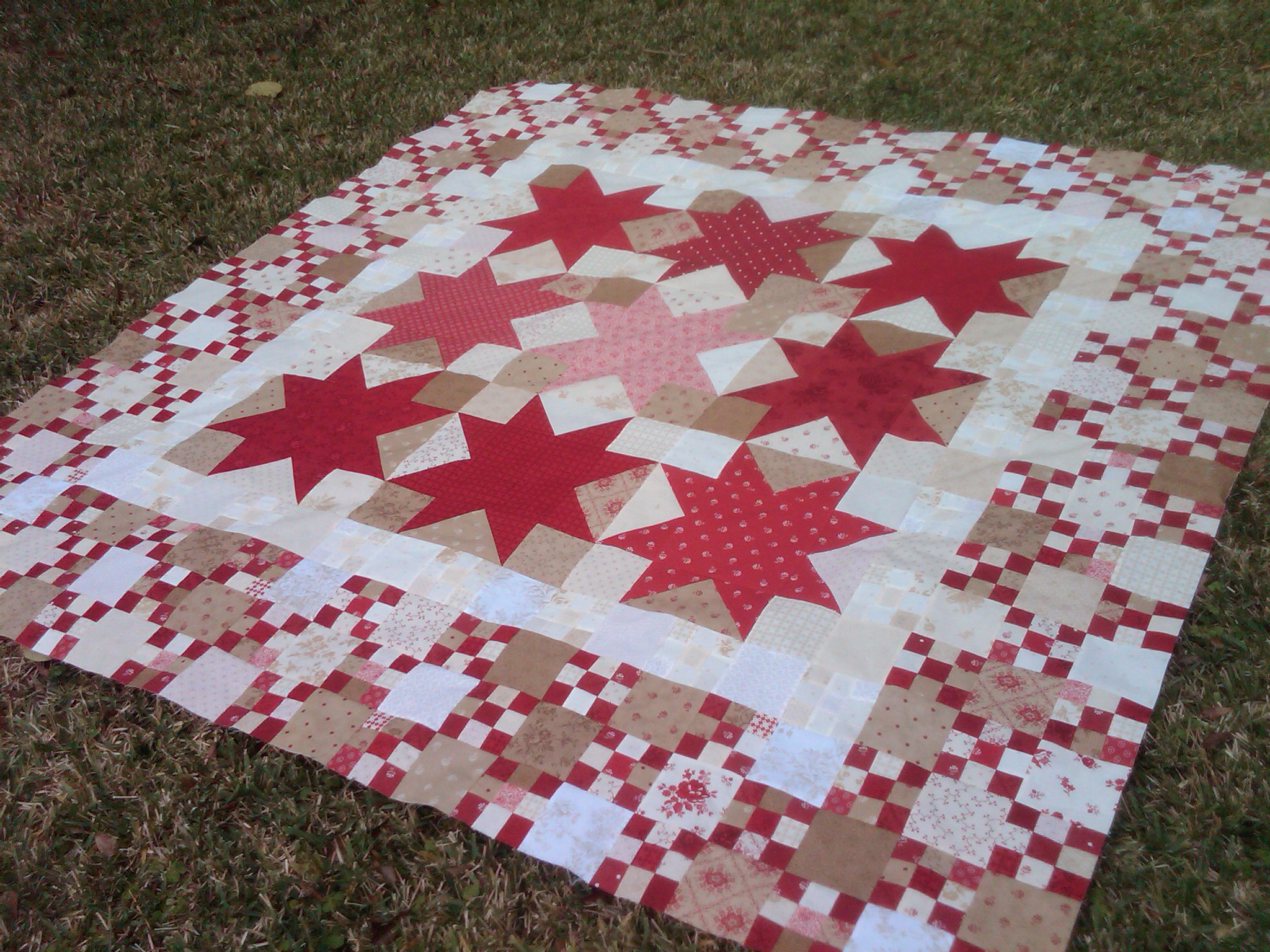 I used the fabric collection “Winter’s Lane” by Kate & Birdie Co for Moda. Beautiful ice blues, grays and saturated reds. The pattern was from The Crafty Quilter and her blog … click here to go to her post.