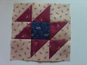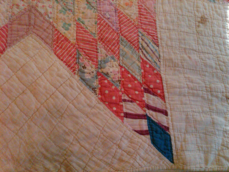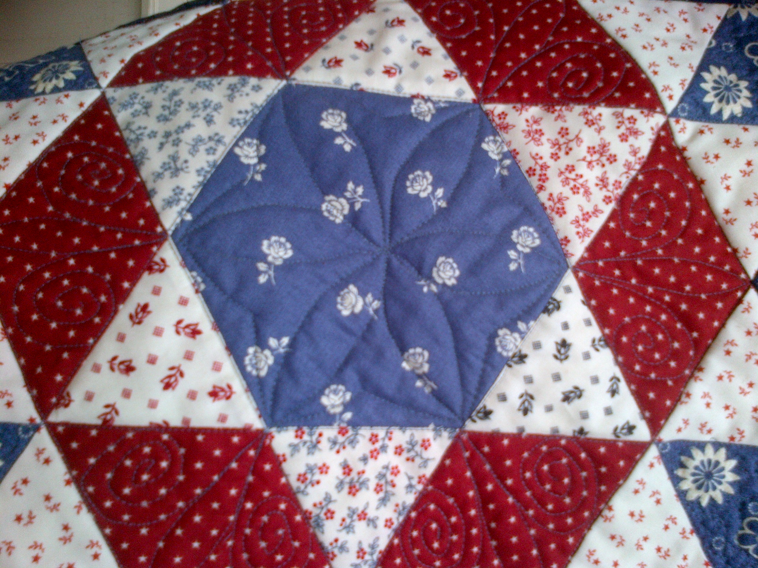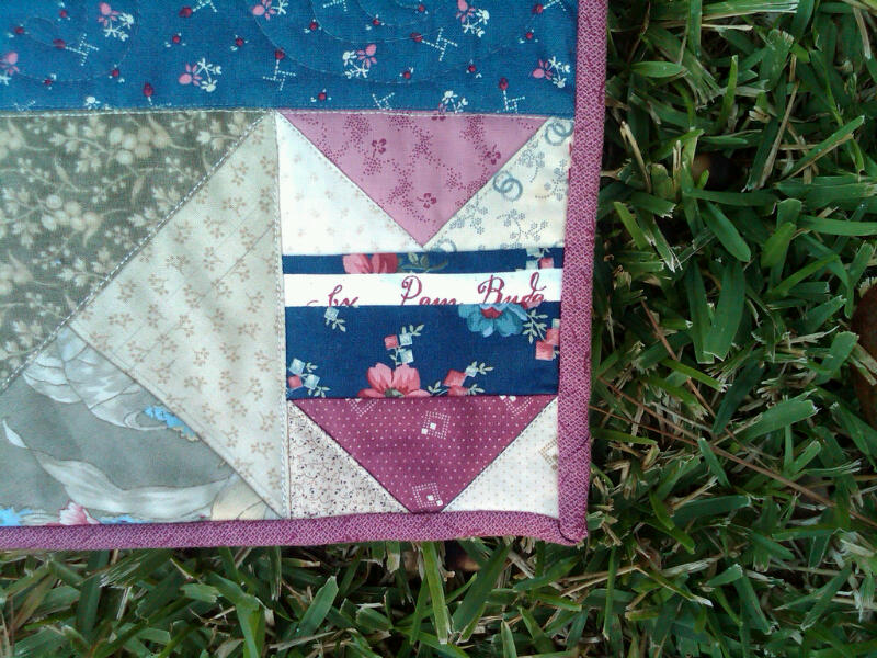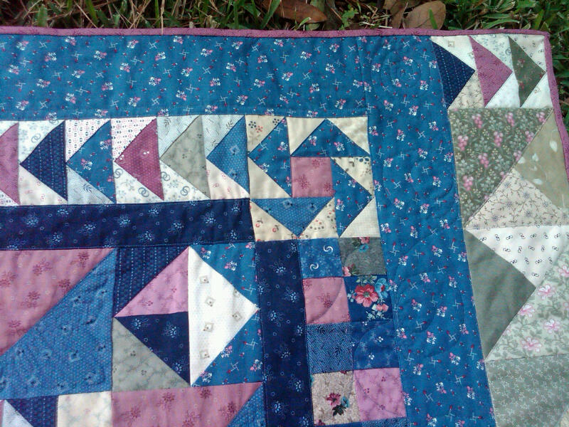 I was under a time crunch and I wasn’t confident enough to do the quilting myself yet, so I just gave her the quilt top with the backing/binding material in her gift. She had it quilted locally and the woman selected a dove/bird motif as the pattern.