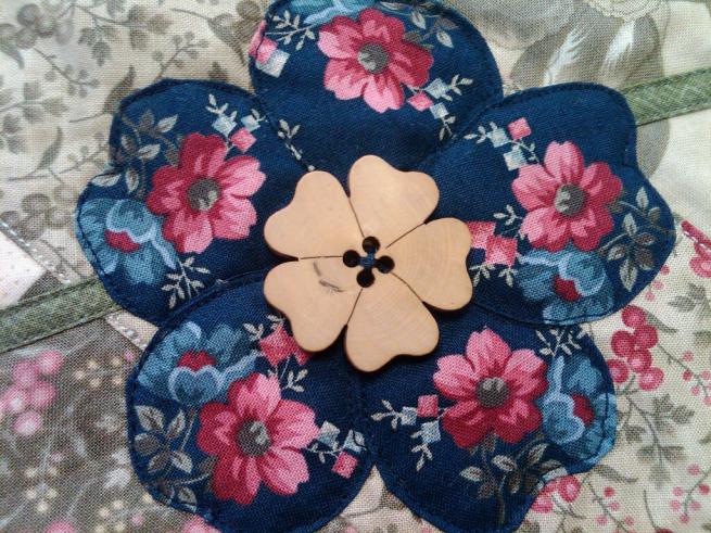 I still love this quilt and the details I put into it. Like the wooden forget-me-not flower button.