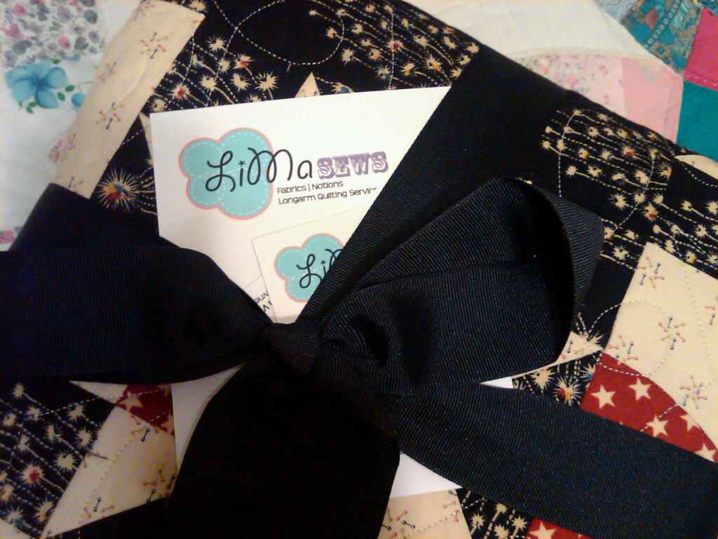 I was under a time crunch and I wasn’t confident enough to do the quilting myself yet, so I just gave her the quilt top with the backing/binding material in her gift. She had it quilted locally and the woman selected a dove/bird motif as the pattern.