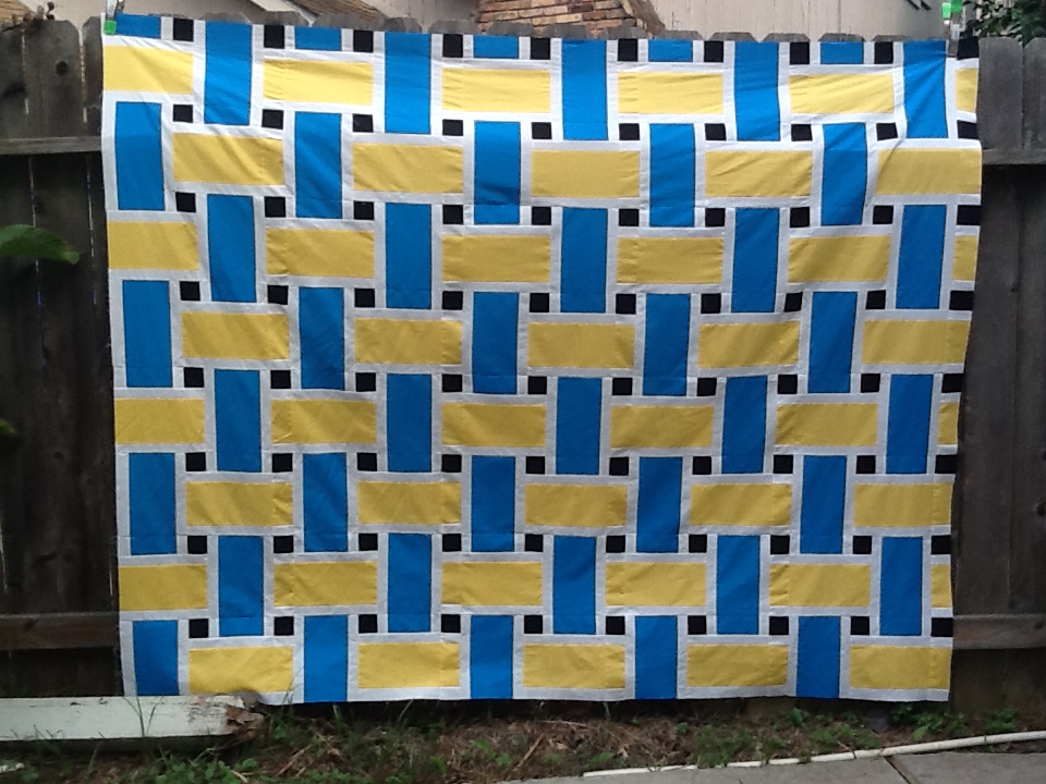 I gave this to my boss today for him to pass along to his son who starts at UCLA this week. I got Abby from Latimer Lane quilts to do the longarm quilting on it and she turned it around so fast for me!