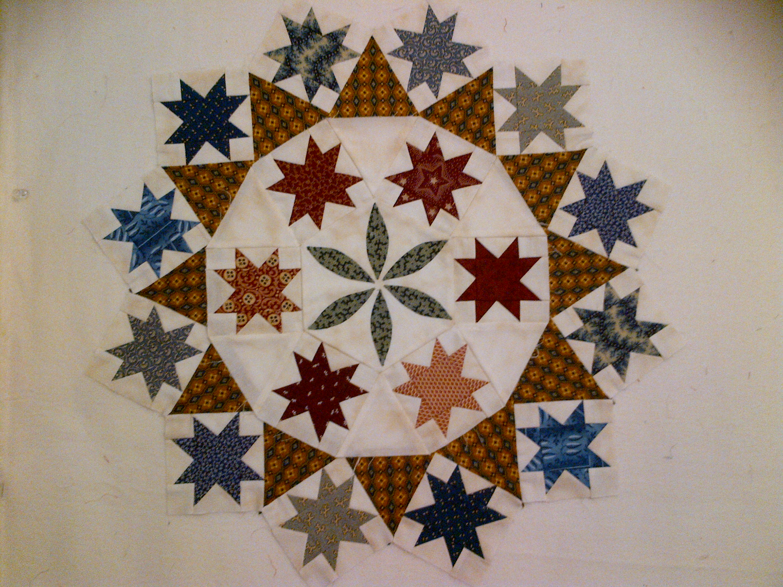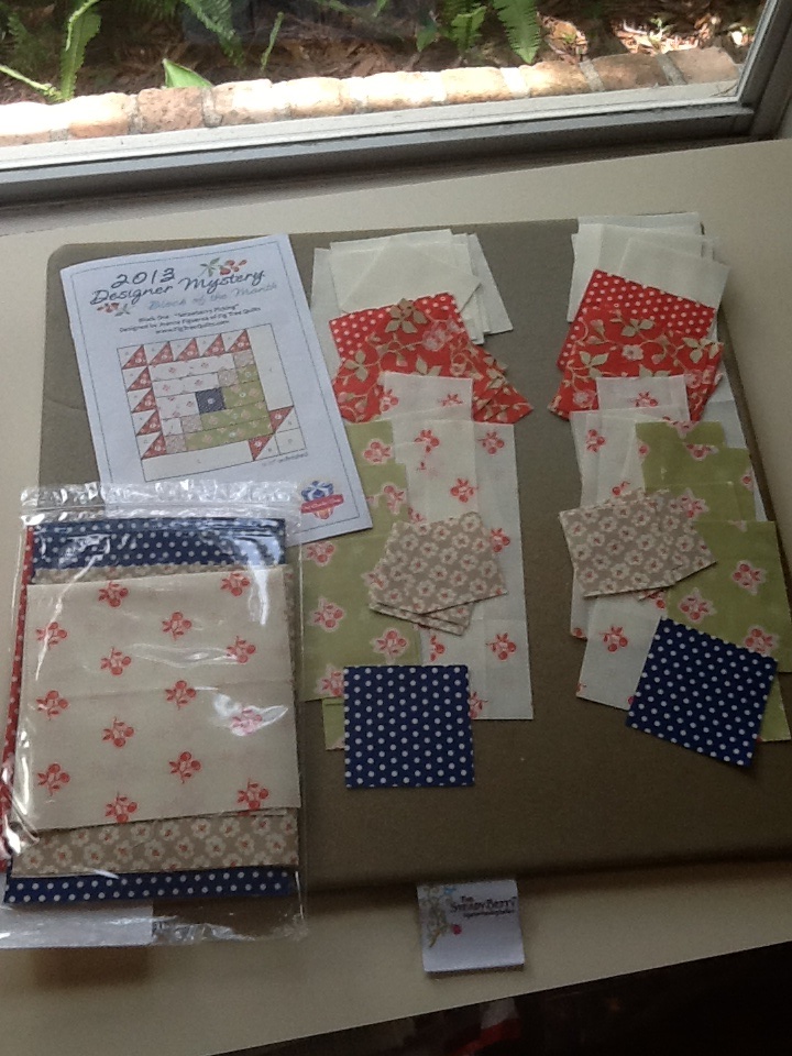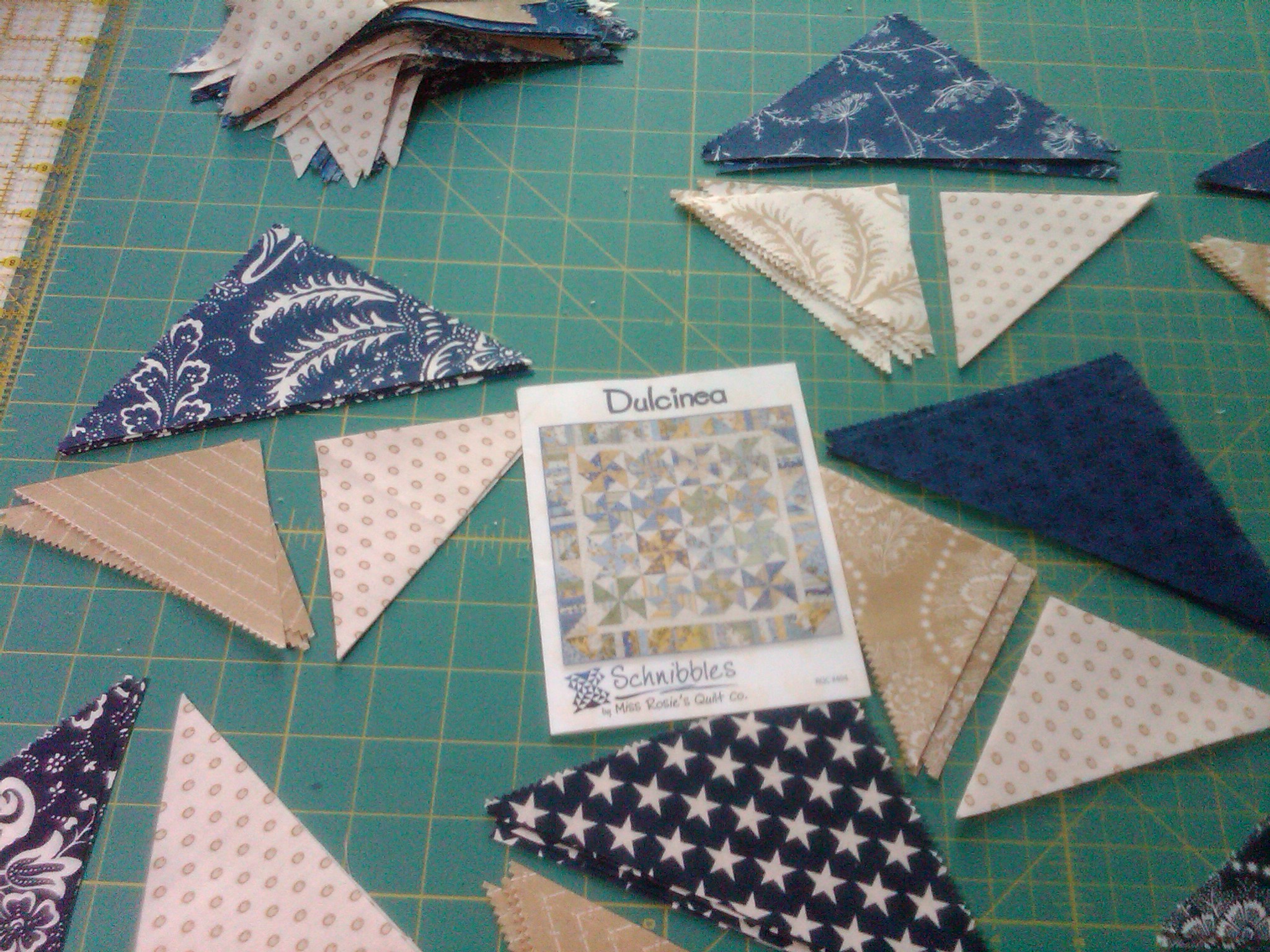 I had started my June AYOS this past week and am working on the pinwheel blocks in the Dulcinea pattern. I went through my stash and found that I had two charm packs of Indigo Crossing by Minick & Simpson (MODA). Very soothing color combination of blues, tans, creams. I can’t wait to see how it will turn out.