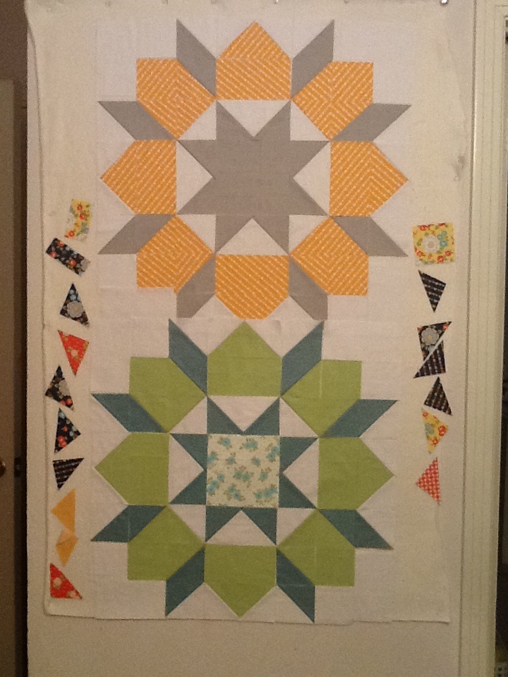Sorry for the poor lighting, it was raining outside and overcast. Once I have a nice sunny day and I get the binding on, I’ll take some really great pictures outside.